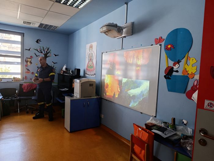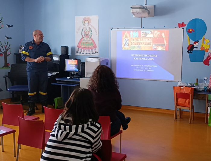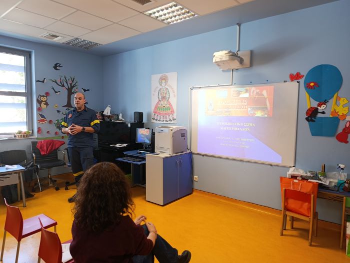 Η παρουσίαση αυτή οργανώθηκε από την εκπαιδευτικό Γκιουλέ Θωμαΐδα που ως μέλος του εν εξελίξει Φρεμπελιανού Δικτύου στην Ελλάδα, είχε την πρωτοβουλία - έπειτα από συνεννόηση με την Προϊσταμένη του Νηπιαγωγείου, τη Διευθύντρια του Δημοτικού Σχολείου του Νοσοκομείου μας και πρότερη συζήτηση με το Σύλλογο Διδασκόντων του Δημοτικού Σχολείου - να καλέσει δύο επιπλέον ομιλητές: την κυρία Σοφία Σταθοπούλου Σοφία (μέλος του εν λόγω Δικτύου) που έχει εργαστεί πολλά χρόνια στη Σκωτία ως εκπαιδευτικός και φέτος μας επισκέφτηκε από τα Χανιά Κρήτης (ΤΕΙ Προσχολικής Αγωγής, Εκπαιδευτικός ΠΕ60 - ΕΚΠΑ, MEd Inclusive Education, UoG) και τον κύριο Αλέξανδρο Μεσημέρτση, Αντιπύραρχο, Διοικητή του 4ου Πυροσβεστικού Σταθμού Αθηνών, ο οποίος με το ζήλο και την καλή προαίρεση που τον διακρίνουν, παρέμεινε σημαντικός συνεργάτης στις παιδαγωγικές μας προσπάθειες όλη τη Σχολική Χρονιά.